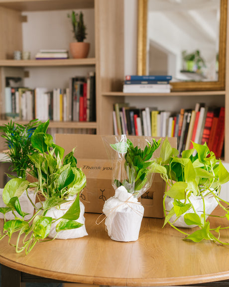La entrega a domicilio de plantas de interior es parte de nuestra experiencia, ¡tenga la seguridad! Cada planta se envasa cuidadosamente en envoltorios adaptados en función de su tamaño o número de productos.