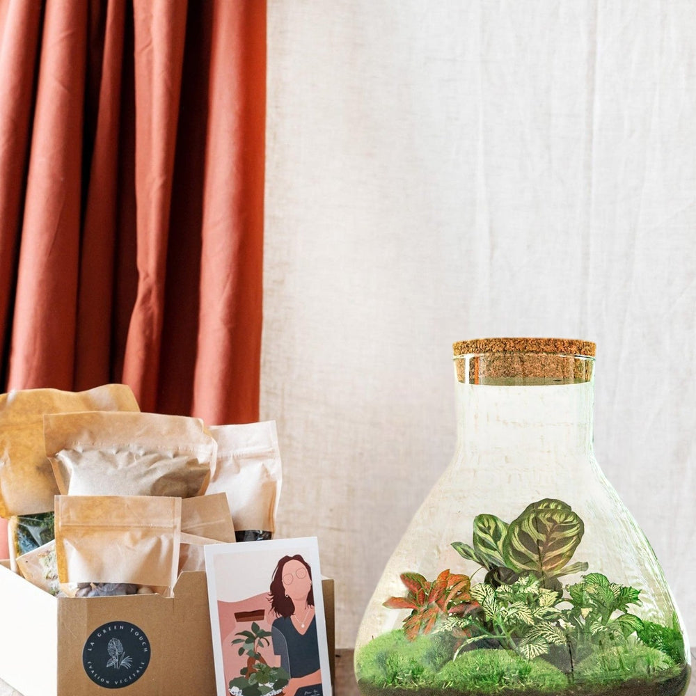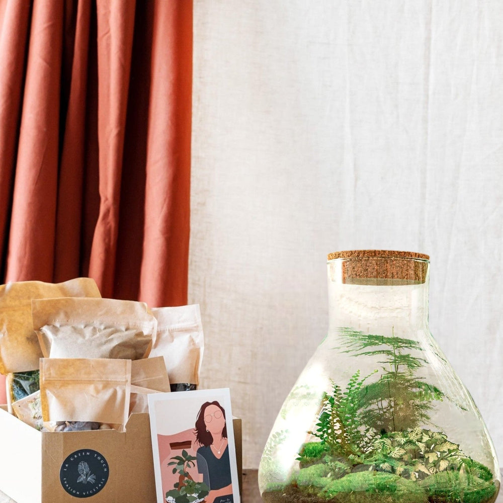 Cada kit se compone de todo lo necesario para hacer un terrario: un jardín en miniatura casi autónomo y autosuficiente. ¡Ideal cuando no tienes buenas manos para la jardinería!