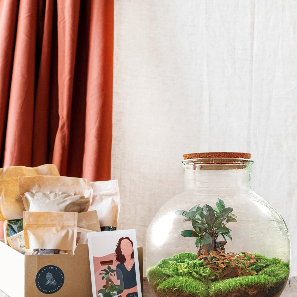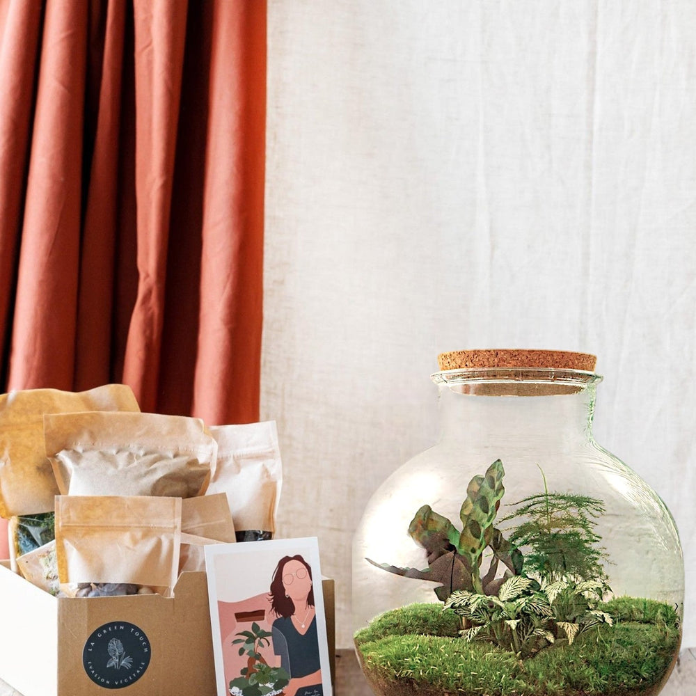 Cada kit se compone de todo lo necesario para hacer un terrario: un jardín en miniatura casi autónomo y autosuficiente. ¡Ideal cuando no tienes buenas manos para la jardinería!