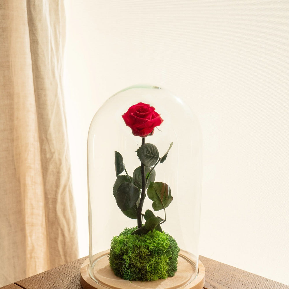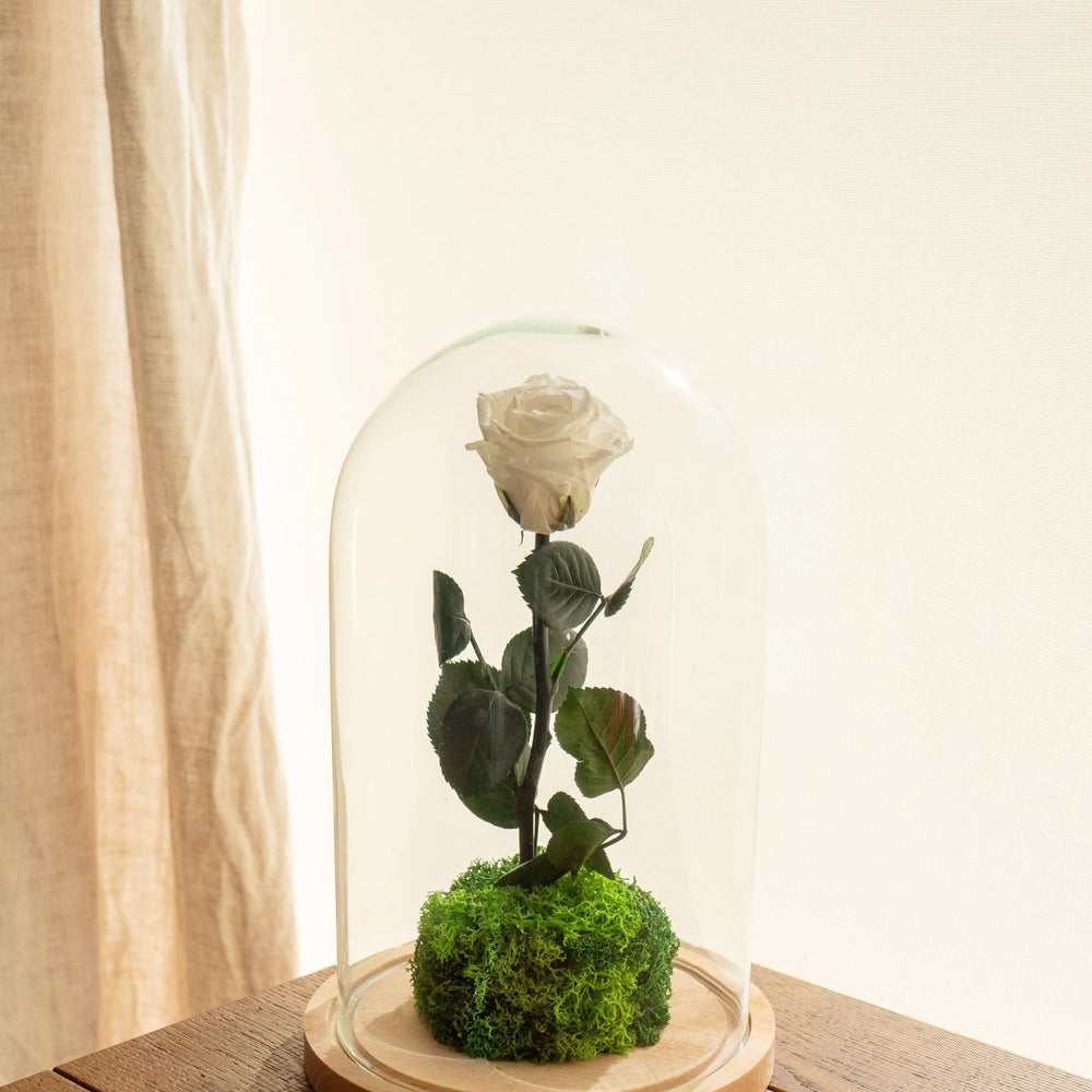 Descubre nuestro nuevo kokedama, totalmente estabilizado bajo cristal para ofrecer una rosa eterna a tu otra mitad.