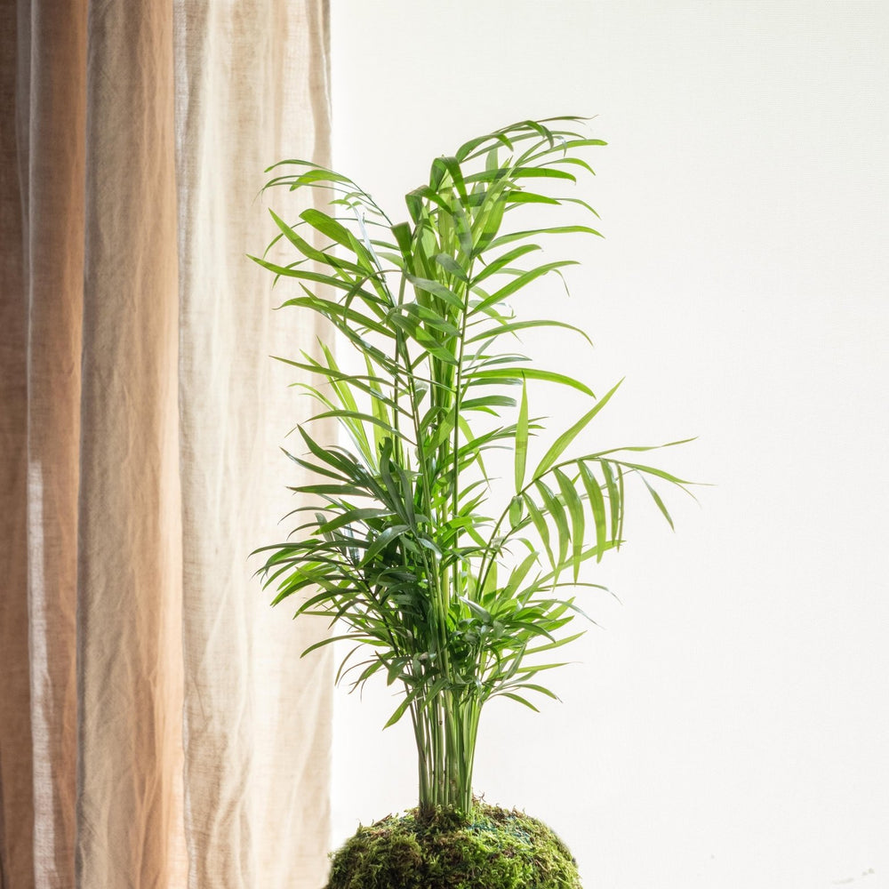 Aparecido en Japón en los años 1990, "koke" significa musgo y "dama", una bola, una esfera pero también algo precioso. Consiste en una esfera de musgo rellena de un nutritivo sustrato de arcilla, sobre el que reposa una planta aquí una bonita Chamaedorea.