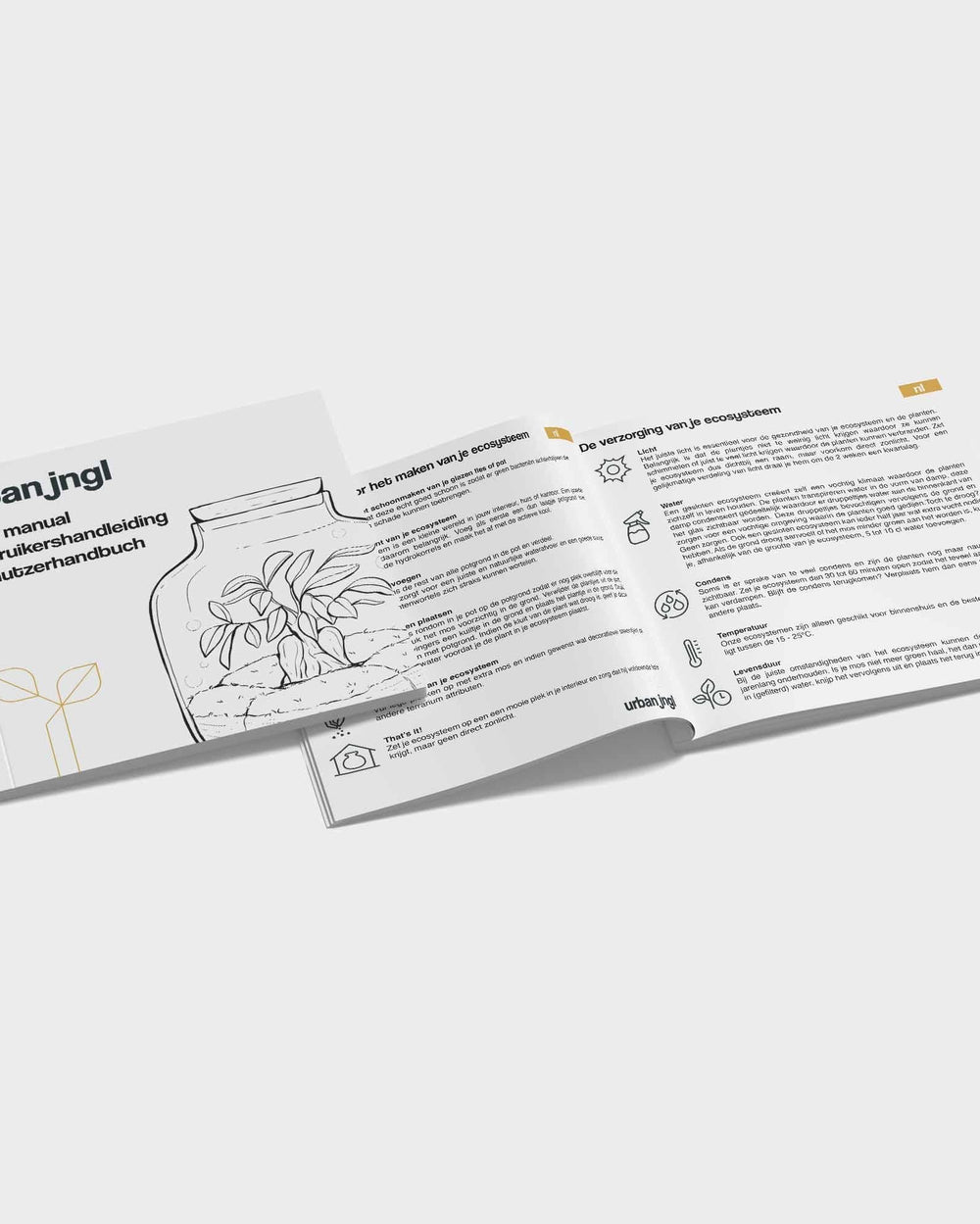 En cada una de estas cajas encontrarás mini plantas, carbón activado, tierra para macetas, bolas de arcilla, una guía de diseño paso a paso y una guía de mantenimiento.